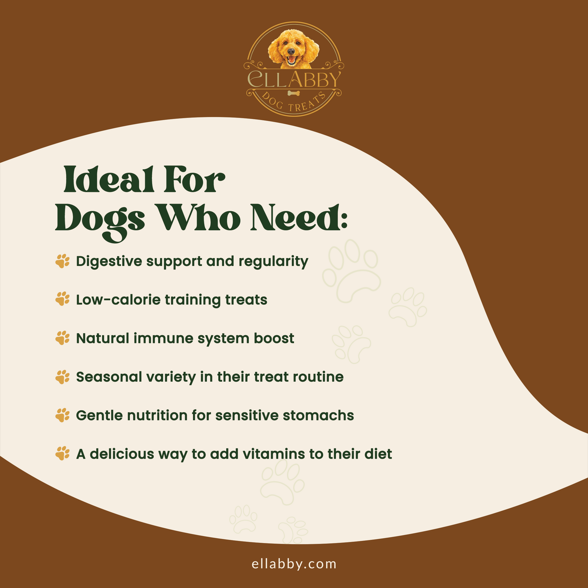 Give your dog the nutritional power of pumpkin – nature's perfect treat that tastes as good as it makes them feel!